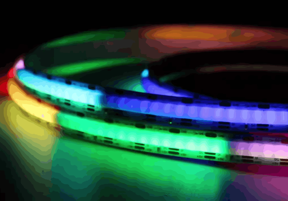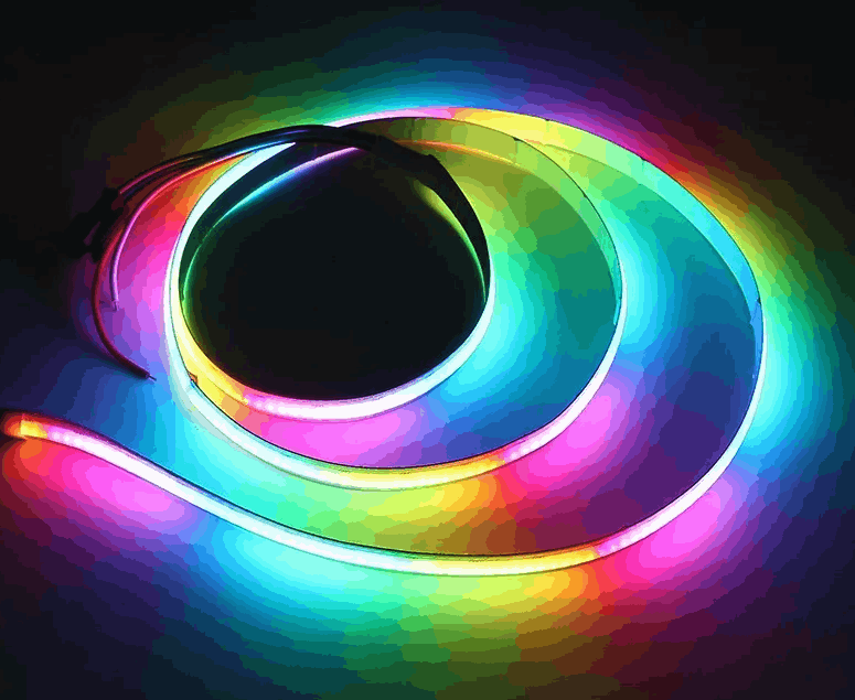 This 24V RGB COB LED strip offers high brightness with smooth color blending and 840 LEDs per meter. Suitable for creative lighting projects requiring sharp, even illumination with excellent color consistency. Non-waterproof, for indoor use.